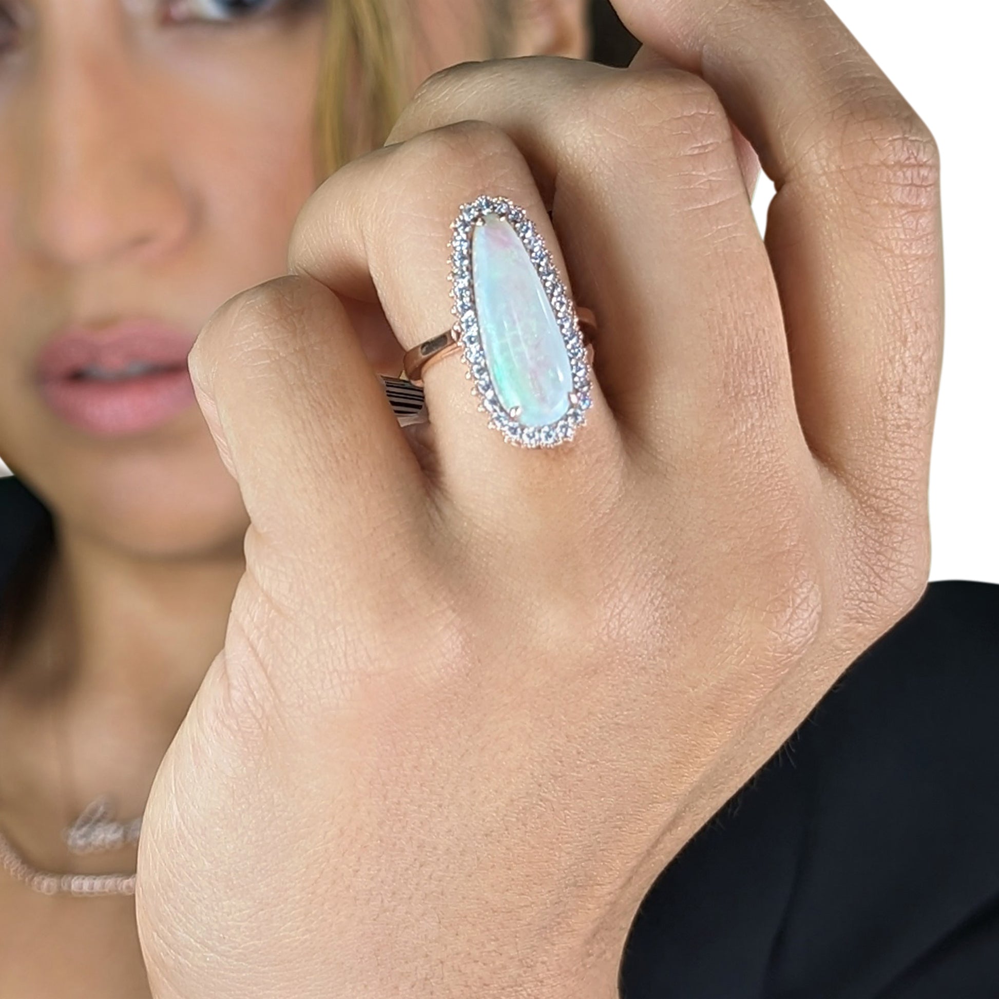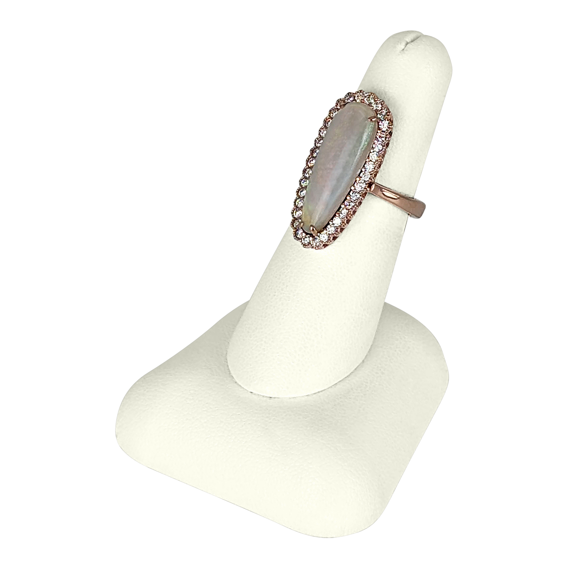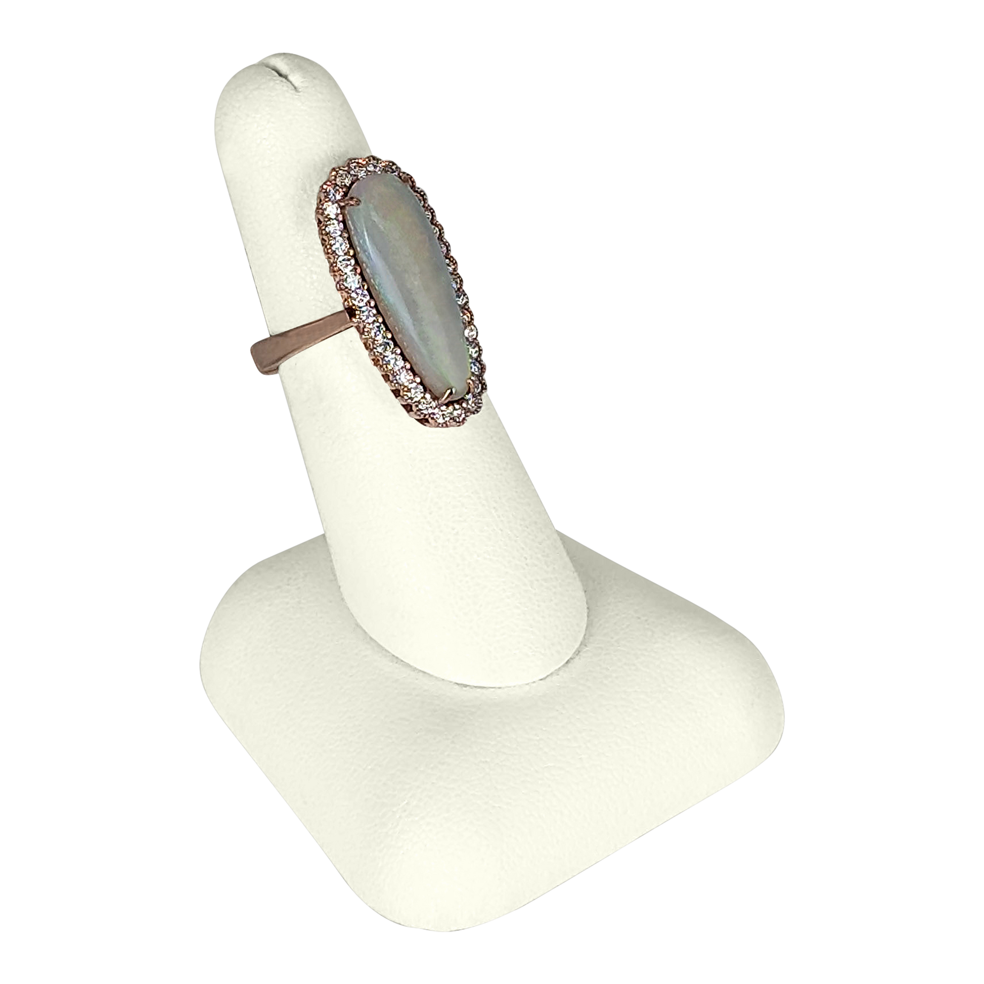 3.36 CT Opal & Diamond Ring in 14K Rose Gold – 34 Round Diamonds, 0.60 CT Total