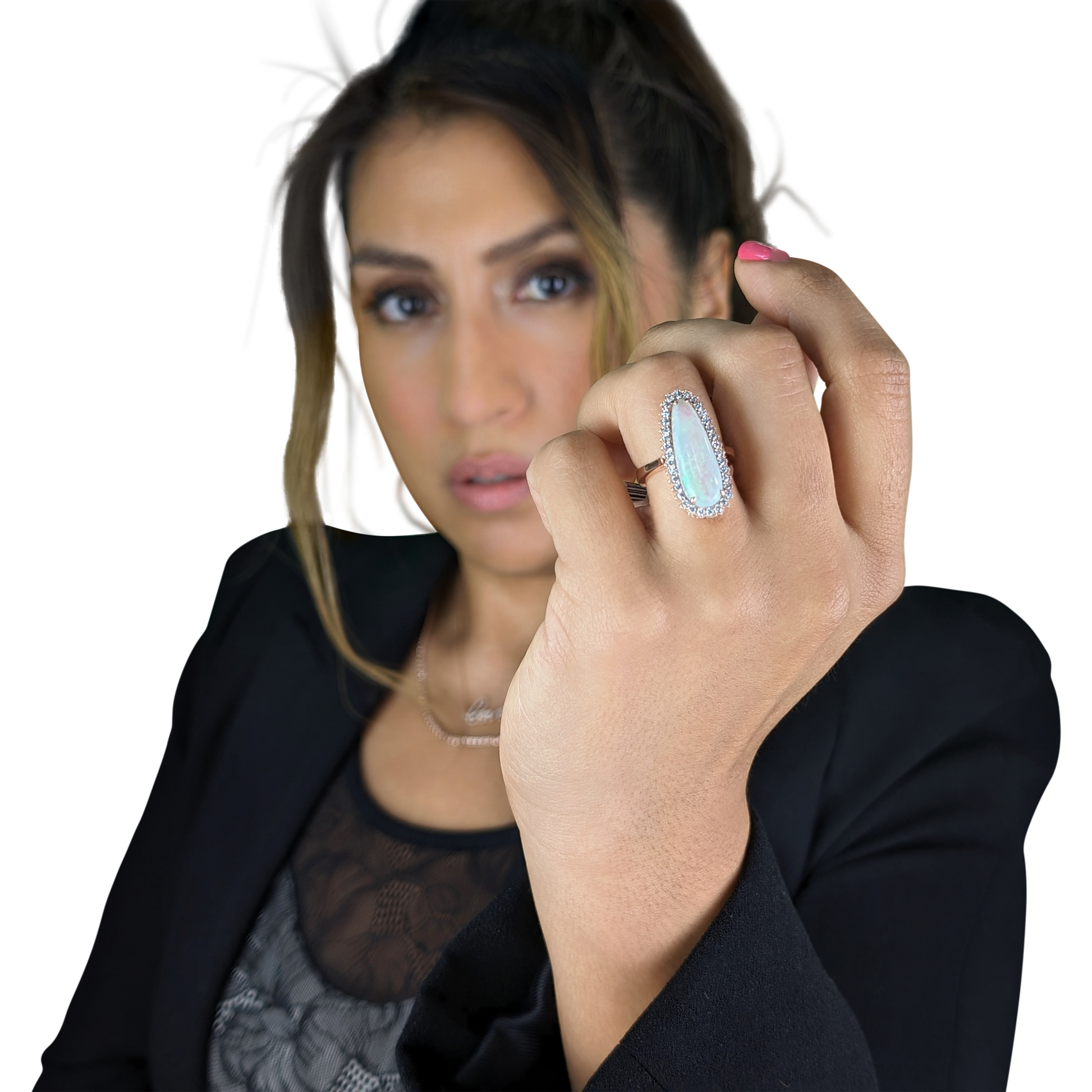 Experience timeless craftsmanship with this opal and diamond ring—available exclusively at Finesse Fine Jewelers.